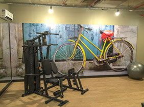 A academia está localizada no 1º subsolo com acesso pela recepção, no elevador externo e é de uso exclusivo dos hóspedes do hotel.