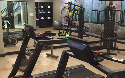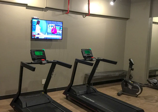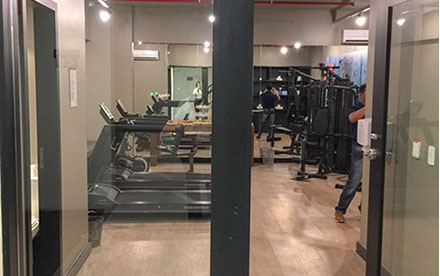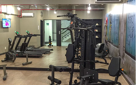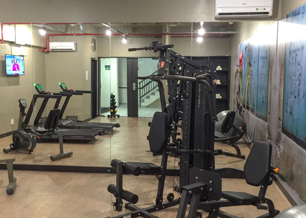 A academia está localizada no 1º subsolo com acesso pela recepção, no elevador externo e é de uso exclusivo dos hóspedes do hotel.