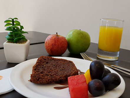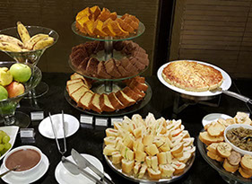 Para que seu dia comece bem, dispomos de um maravilhoso café da manhã, com um Cantinho Saudável cheio de opções naturais, integrais, sem glúten e sem lactose: